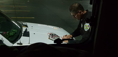 Am Abend dieser Kriminacht in Aberdeen waren wir wie so oft noch unsere Walmart-Einkäufe erledigen... Es fielen uns schon einige suspekte "Gestalten" auf dem Parkplatz auf und die Polizei-Präsenz in der Stadt schien hoch. Beim Ausgang wollte die Dame dann unseren Kassenzettel sehen! Das hatten wir vorher noch nicht erlebt... Das Wetter war trüb, neblig und es war schon dunkel als wir ankamen. Hätten wir die Wahl gehabt, wären wir noch weiter gefahren. Aber es war zu spät und der nächste Walmart in weiter Ferne - und auch alle Campingplätze zu weit weg... So legten wir uns mit einem komischen Gefühl ins Bett und schliefen unruhig ein :-( Gegen 0.00 fuhr ein Wagen DIREKT neben unser CaliMobil und blieb dort stehen. Offenbar legte sich jemand in dem Auto schlafen, was auf Walmart-Parkplätzen nicht ungewöhnlich ist. Viele Menschen leben gar in ihrem Auto. Das wunderte uns nicht weiter, auch wenn wir es schon komisch fanden, dass die Person so dicht neben uns parkte... Keine Stunde später wurden wir von Lios Bellen, Taschenlampen, zwei Sheriff- und einem Polizeiauto mit insgesamt 6 Beamten geweckt! Sie hatten die Person die neben uns geparkt (sich versteckt!) hatte, geweckt und aus dem Auto geholt. Völlig verdattert und erschrocken liessen wir das Fenster herunter. Der uns entgegen kommende Sheriff entschuldigte sich sehr mit einem Lächeln für die Umstände und fragte, wann der Wagen neben uns angekommen sei und dass der Mann darin eine Person sei, die sie schon sehr lange suchen!! OOOOOOh MYYYYYY!!!! Was soll man da schon sagen?! Er meinte sie hätten wohl noch eine Weile zu tun und würden verstehen, wenn wir weg fahren wollten... Neeeeeeee, den Krimi wollten wir schon zu Ende sehen! In der ersten Reihe sitzt man schliesslich nicht jeden Tag!! Einige Minuten später wurde der bärtige Mann in Handschellen abgeführt. Das Auto wurde an jeder Tür versiegelt mit der Aufschrift "Beweisstück" und eine Weile später von einem Abschleppdienst und Sheriff-Escorte abtransportiert! Was für ein Erlebnis! Was für eine Krimi-Nacht! Wir schliefen den Rest der Nacht in Schichten malten uns aus, was der Unbekannte wohl verbrochen hatte...