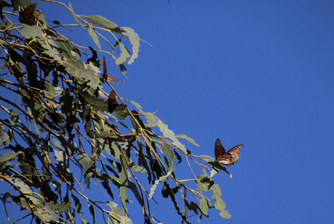 Auch hier gibt es, wie in Pacific Grove, einen Eukalyptushain, in dem die wundeschönen Monarch-Falter überwintern. In erster Linie haben wir in den letzten 2 Wochen aber viel Sonne und die endlosen Dünen genossen! Sand so weit das Auge reicht! Oft kamen wir uns ein bisschen vor wie in der Wüste! Um das Meer hinter diesen riesigen Dünen zu erreichen muss man eine gute halbe Stunde laufen... Wo gibt’s denn so was?! :D Wir waren jeden Tag aufs Neue von diesem Anblick begeistert! Der Campingplatz selbst war sehr einfach und nichts rundrum was die Ruhe stören konnte :) Ausser die Kojoten die regelmässig am Abend heulten und bellten sobald der laut hupende Zug in der Stadt vorbei fuhr...! Wir hatten hier viel Zeit unsere Gedanken zu sortieren, zu lesen, ausgiebig Fährtenarbeit mit Lio zu machen undundund. Uuuund wir hatten endlich Zeit wieder ausgiebig Musik zu machen und haben einen Song geschrieben :)! Dazu gibt’s dann aber einen extra Beitrag ;) Ihr müsst also noch ein bisschen Geduld haben. Die Studioaufnahmen sind noch nicht ganz abgeschlossen :-P